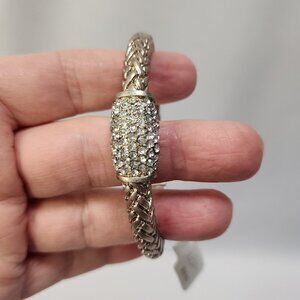 LOFT Braided Design Silver and Crystal Stretch Bracelet