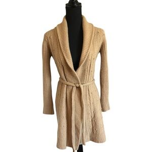 LOFT Brown Cardigan Sweater Wool Blend with Tie Waist Size Women’s XS