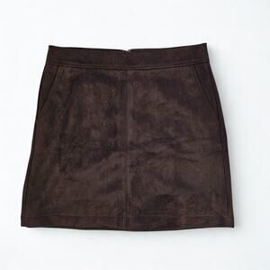 Crafted from soft faux suede in a rich brown hue, this skirt offers a touch of luxury and style.