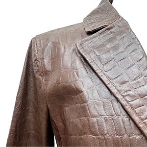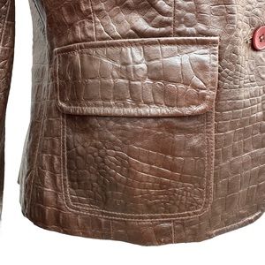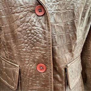 LOFT Brown Reptile Embossed Leather Two-Button Blazer Jacket