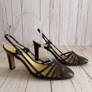 LOFT Brown Simple Sandal Heels Size 5.5 Closed toe Slip on Pre Owned condition