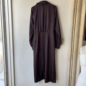 LOFT Brown Striped Wrap Midi Dress w/ Tie Waist, Collared, Long Sleeve M