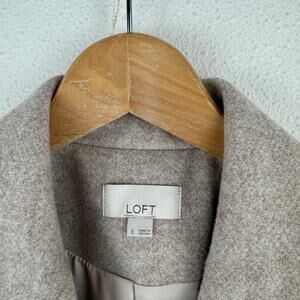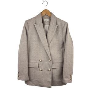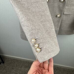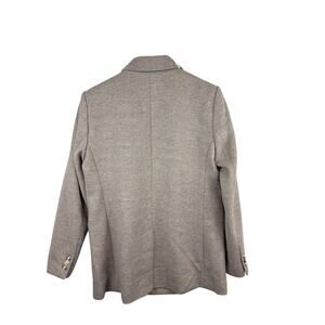 Soft brushed fabric, double-breasted with pearl & gold-tone buttons, lined, flap pockets, size 6.