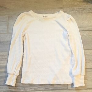 LOFT Brushed Waffle Puff Sleeve Creme Shirt, Size Small