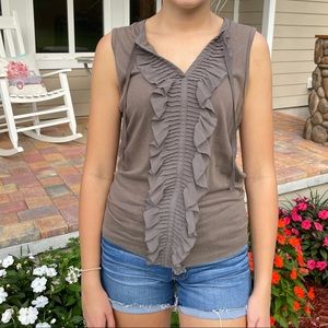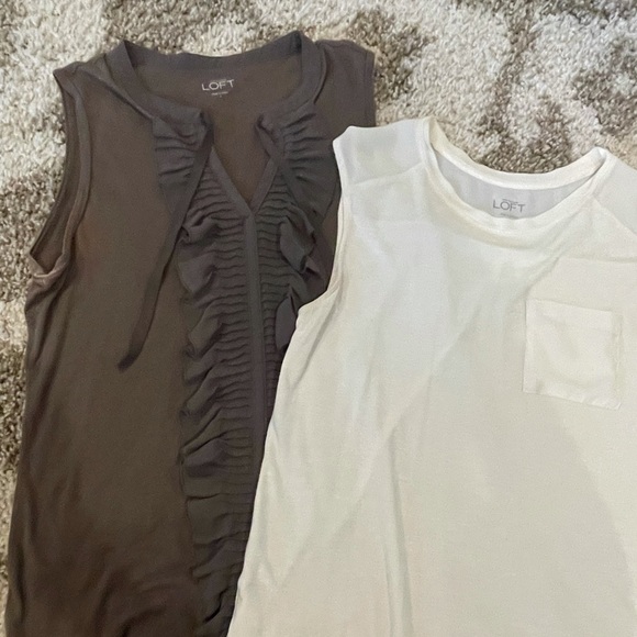 Elegant LOFT olive green ruffle top & solid off white blouse. Very pretty tops to dress up or down! Green top would be perfect for fall under a cardigan! Used condition, fits true to size.