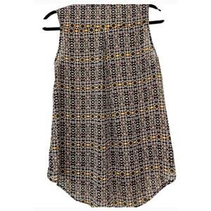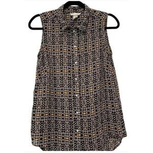 π2. H&M Sleeveless Collared Top β Sz 4 (fits XS) β’ White w/ gold & black geometric print β’ Rounded hem β’ Polyester β’ RN#3101255
