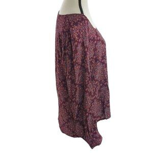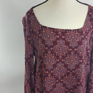 LOFT Burgundy Floral Print Blouse Womens Size S Long Sleeve Square Neck