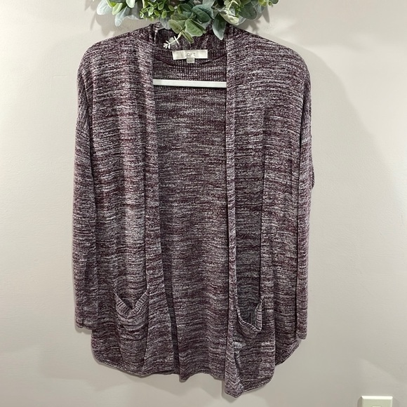 LOFT Burgundy Maroon Heather Cardigan Sweater with Pockets M