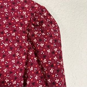 LOFT Burgundy Red Floral Button Front Ruffle Long Sleeves Top Women's Small
