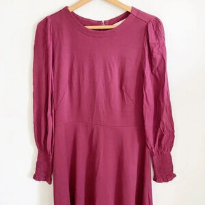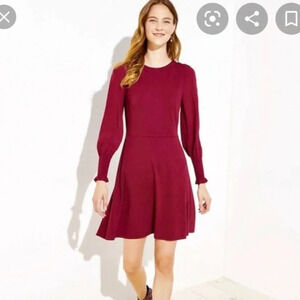 LOFT Burgundy Smocked Cuff fit & flare Dress