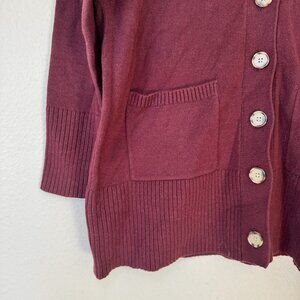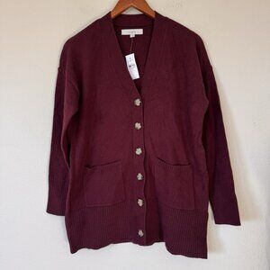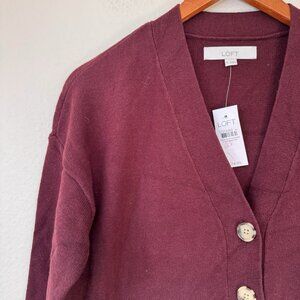 LOFT Burgundy V Neck Cardigan Size Small Cotton Blend New Heavyweight
