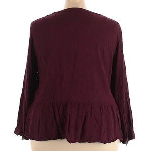 LOFT Burgundy Wine Peasant Peplum Embroidered Blouse Womens Plus Size 18