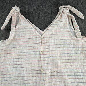 LOFT Button Flounce Dress Small Tie Shoulder Sleeveless Cotton Blend Ivory