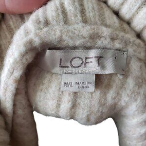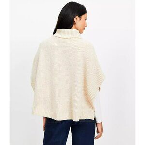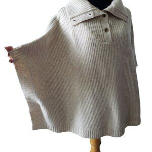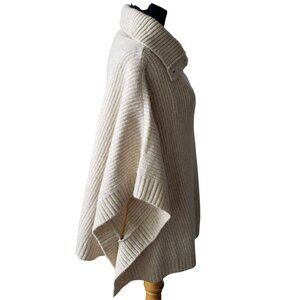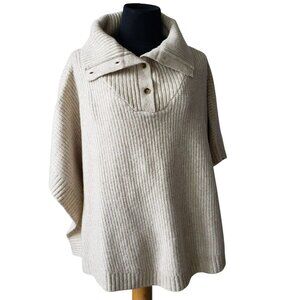 LOFT Button Turtleneck Poncho Cream Oatmeal M/L Knit Sweater Quiet Luxury