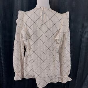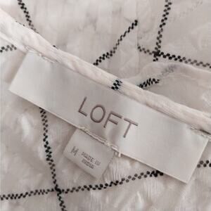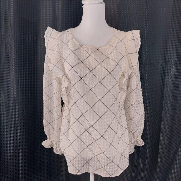 From Loft, this semi- crinkly finish PLAID top features a black on cream diagonal plaid! RUFFLE front, elastic delineated waist, pouf elastic wrist sleeves! Peasant look gone dress-up! Size M, worn one time! Excellent! Superb EUC Condition! **ABSOLUTELY GUARANTEED CONDITION: EUC MINTY-EXCELLENT TO LIKE-NEW, by Lily @HauteClub!***