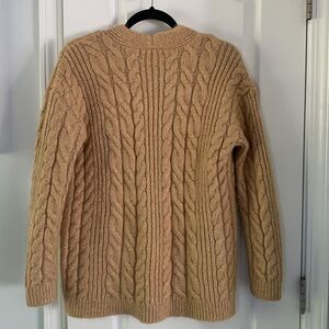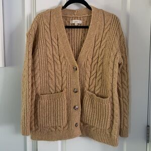 LOFT Cable Knit Boyfriend Relaxed Fit Cardigan Sweater in Camel Heather size XS