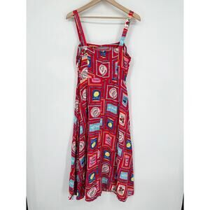 LOFT Can Print Linen Blend Strappy Midi Dress Square Neck Sleeveless Sundress