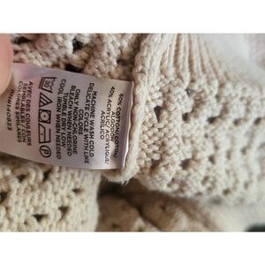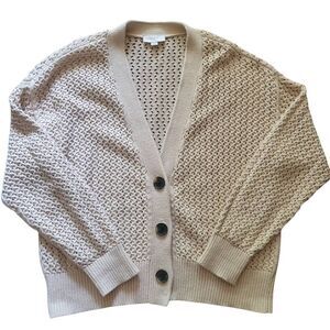 LOFT Cardigan Sweater Women's Large Tan Open Knit Crochet V Neck Cotton