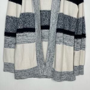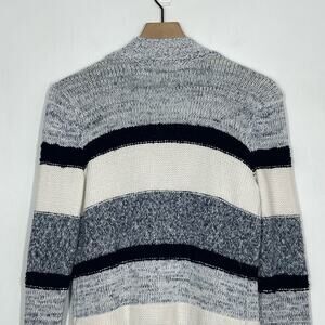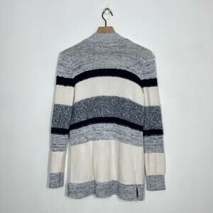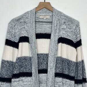 LOFT Cardigan Sweater Women's Size Small Blue Marled Striped Knit Open Front