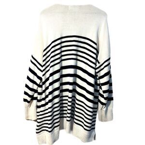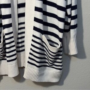 LOFT Cardigan White Navy Blue Striped Women’s XXL Open Front Pockets