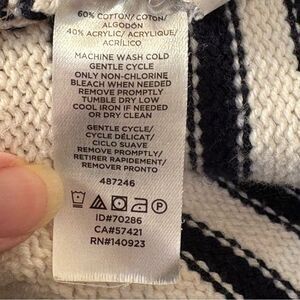 This LOFT cardigan sweater showcases a classic black and white striped design, offering a relaxed fit ideal for layering. Crafted from a soft knit fabric, it provides both comfort and style, making it a versatile addition to any wardrobe.