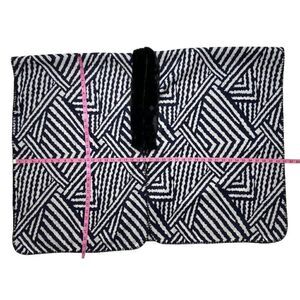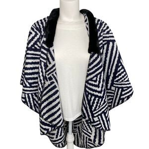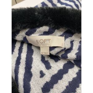 LOFT Cardigan Wrap Women's MEDIUM Blue Black Zebra Faux-Fur Collar Draped NWOT