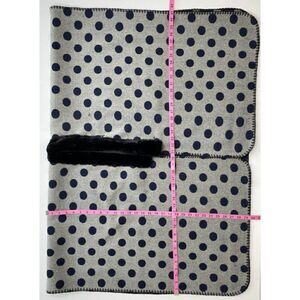 LOFT Cardigan Wrap Women's MEDIUM Blue Gray Polka Dots Faux-Fur Collar Draped