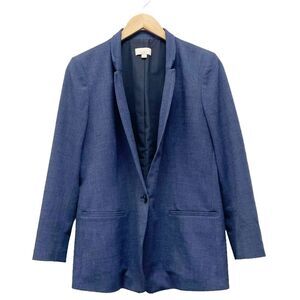 LOFT Chambray Stretch Single Button Notched Collar Linen Blend Blazer Size 10