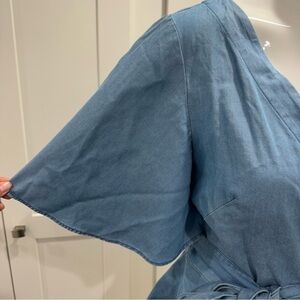 LOFT Chambray Wrap Top Short Flutter Sleeve V Neck Lyocell Blouse Small