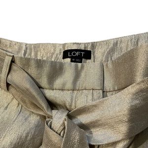 LOFT Champagne Shimmer Pleated Tie Waist Shorts