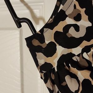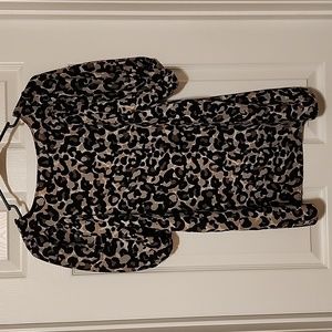 Like new, Loft Cheetah Print Short Puff Sleeve Blouse, Black, Gray, Tan, Brown, size small