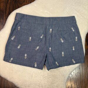 LOFT Chino Shorts 12 Blue Embroidered Pineapples Riviera Cotton Mid-Rise Women's