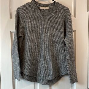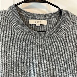 LOFT Chunky Knit Ribbed Wool Blend Gray Sweater w/ Rounded Hem - Size Small