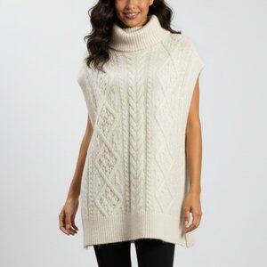 Layer your looks in cozy and classic cable texture with this lush and drapey wear-with-everything poncho. Turtleneck.