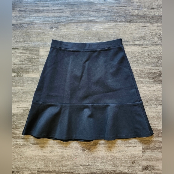 LOFT Classic Black A-Line Ruffle Skirt, great pre worn condition, size xs, waist 13.5 inches across front flat lay, length 18.5 inches, see photos for materials, elastic waistband, buisness professional