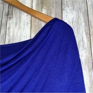 Chic cobalt blue top with a draped neckline. Ideal for versatile styling.