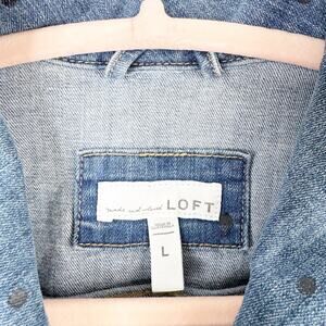 LOFT Collared Long Sleeve Polka Dot Denim Jacket Stretch Size Large L Preppy