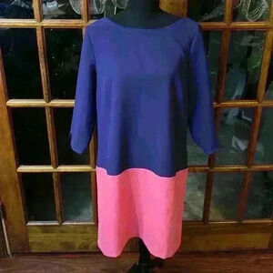 LOFT Color Block 3/4 Sleeve Shift Dress Pink/Purple Colorway size 14