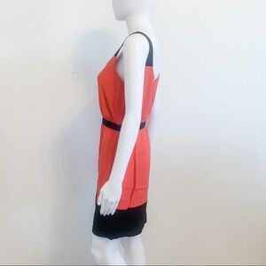 Ann Taylor Loft Pink & Black Color Block Sleeveless Dress Stretch for Comfort Elastic Waist Empire Waist 100% Rayon