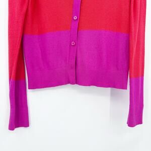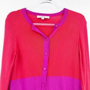 LOFT Colorblock Orange Magenta Cardigan Sweater Lightweight Womens Size Med