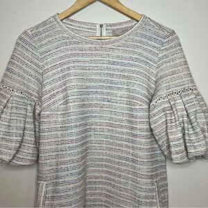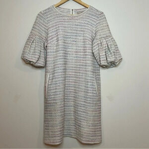 LOFT Colorful Boucle Tweed Puff Sleeve Shift Dress