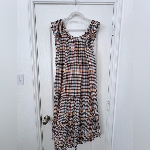 Vibrant checkered dress with sleeveless design. Ideal for casual wear.