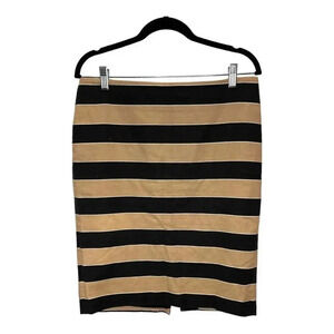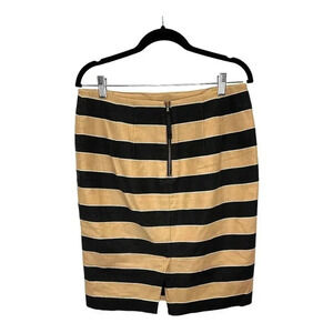 LOFT Contrast Stripe Pencil Skirt Size 8 Black Beige Exposed Zipper Back Slit