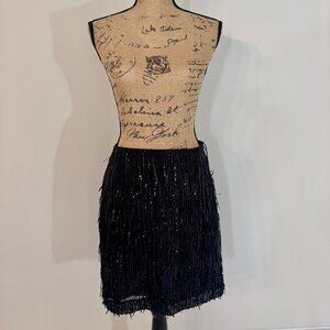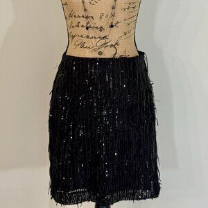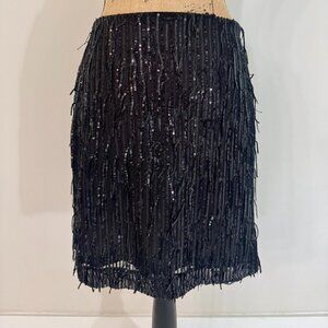 LOFT Coquette Black Sequin Fringe Skirt – Elegant Eveningwear, NWT
