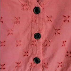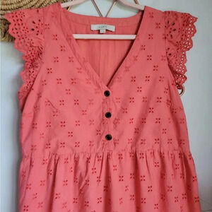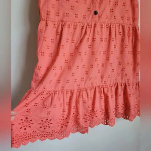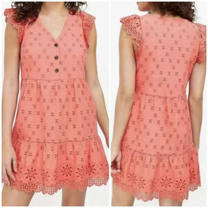 LOFT Coral Embroidered Eyelet Flutter Sleeve Tiered Ruffle Shift Sun Dress SZ 8
