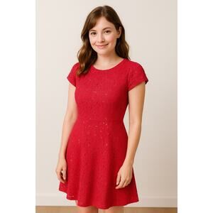LOFT Coral Lace Shift / Fit & Flare Dress 2 Women Cap Sleeve