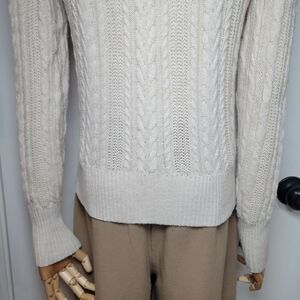 LOFT Cotton-Wool Blend Cable Knit Cardigan Size Small A timeless cable knit cardigan from LOFT that’s both cozy and chic. Made from a soft cotton-wool blend, this sweater offers warmth without bulk, making it perfect for layering. The oversized statement buttons add a touch of vintage charm, while the neutral cream color makes it a versatile wardrobe staple. Why We Love It: ✔ Classic Cable Knit – A forever-stylish design that’s effortlessly elegant. ✔ Soft & Warm Blend – The cotton-wool mix is cozy yet breathable. ✔ Versatile Neutral Shade – Pairs effortlessly with everything from jeans to skirts. Styling Tips: ✨ Office Chic: Layer over a blouse with tailored pants for a polished look. ✨ Casual Cozy: Pair with denim and ankle boots for a laid-back weekend vibe. ✨ Layered Luxe: Wear over a slip dress or with a midi skirt for an elevated ensemble. Details: Size: Small Color: Cream / Ivory Material: Cotton-Wool Blend Condition: Excellent Measurements: Armpit to Armpit: 17.5” Armpit to Cuff: 18.75” Length: 21.75” ----- Dreaming of desert vibes? 🌵Explore my closet for more boho treasures and bundle to save big on your unique finds! Sun-kissed deals await when you mix and match—perfect for adding some southwestern charm to your wardrobe!🤠 Hashtags: #LOFT #CableKnit #CozyStyle #NeutralWardrobe #SweaterWeather #ClassicStyle #TimelessFashion