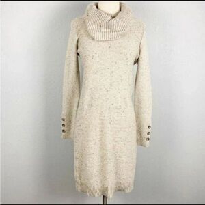 LOFT Cozy Knit Cowl Neck Cream Sweater Dress