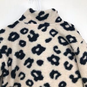 LOFT Cream Black Cheetah Print Quarter Snap Cozy Fleece Pullover