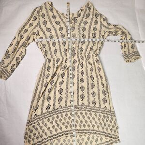 LOFT Cream & Black Long Sleeve Button-Down Sheath Dress Size Small
